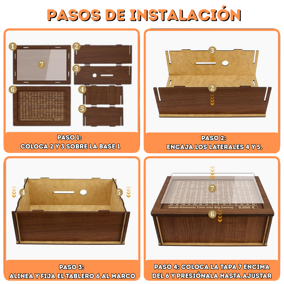 Gracias a sus esquinas redondeadas y madera gruesa, la hucha es resistente a golpes leves, evitando que se rompa o se dañe el contador por caídas accidentales.